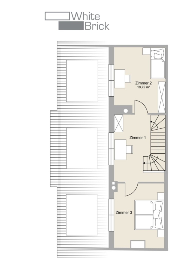 Die Wohnung verfügt insgesamt über eine Fläche von ca. 128m2 und gliedert sich über zwei Etagen: