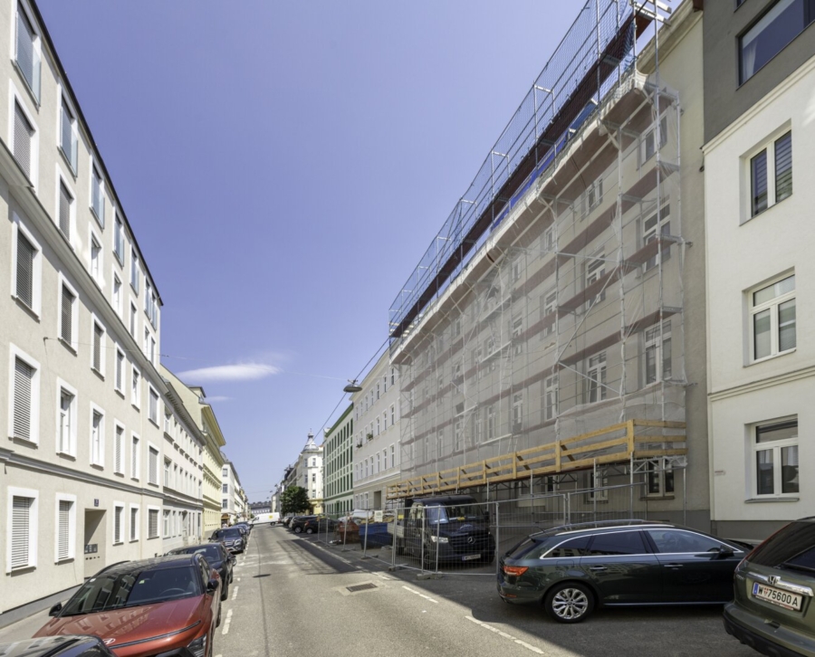 Das komplett sanierte Jahrundertwendehaus wurde kernsaniert und alle Leitungen erneuert, sowie ein Lift und das Dach neu errichtet.