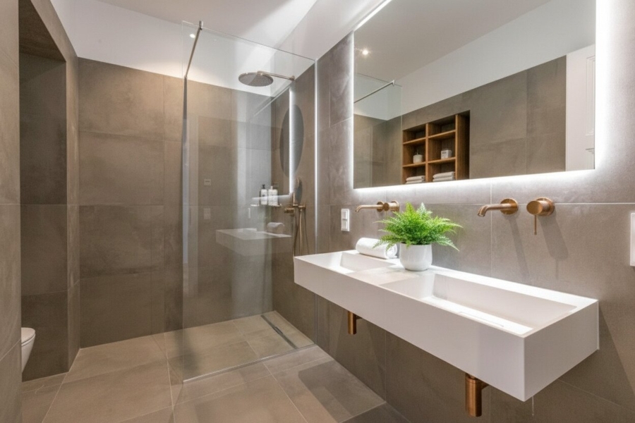 - modern ausgestattetes Badezimmer mit italienischen Fliesen