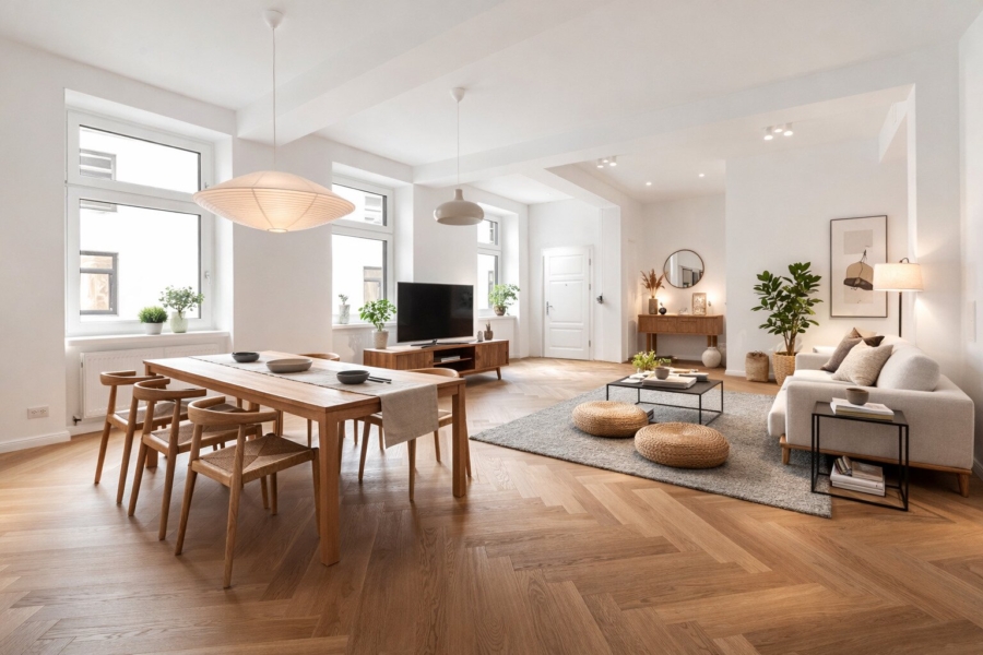 - hochwertiger Echtholzparkett