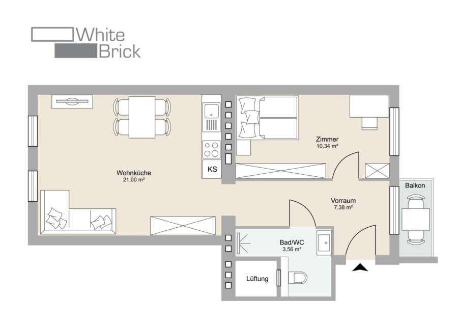 - Balkon: ca. 2,5m2 vom Vorraum begehbar (wird bis Ende Mai 2026 errichtet)