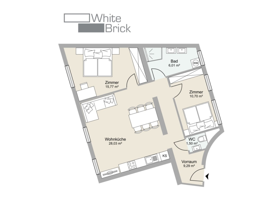 - Bad: 6,01m2 mit Dusche und Waschmaschinen-Anschluss