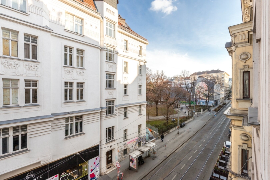 Das schöne Jahrhundertwendehaus befindet sich in unmittelbarer Nähe zur Lerchenfelderstraße und der U6-Station Thaliastraße.