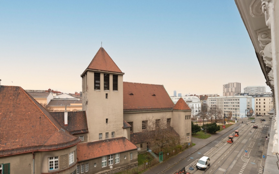 Das schöne Jahrhundertwendehaus befindet sich in unmittelbarer Nähe zum Volkertmarkt und der Taborstraße.