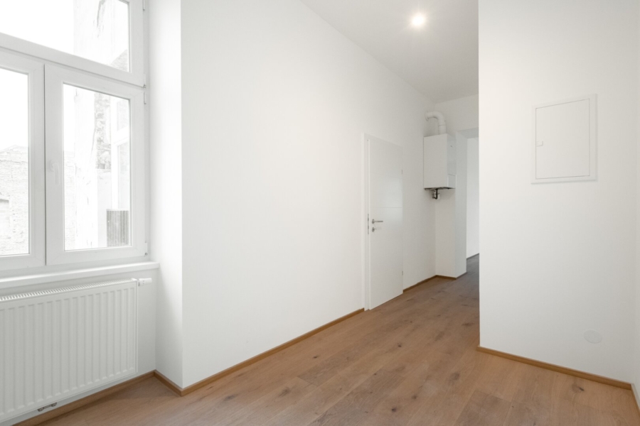 Die Wohnung liegt im 3.Liftstock und verzaubert durch ihre praktische Aufteilung, die hofseitige Loggia und die hochwertige Ausstattung, bei der man die Liebe für Details sofort erkennt. Die Echtholz Eichen-Dielen, die neuen Holz-Türen, sowie die ebenerdige Dusch sind nur ein Auszug der qualitativen Ausstattung.